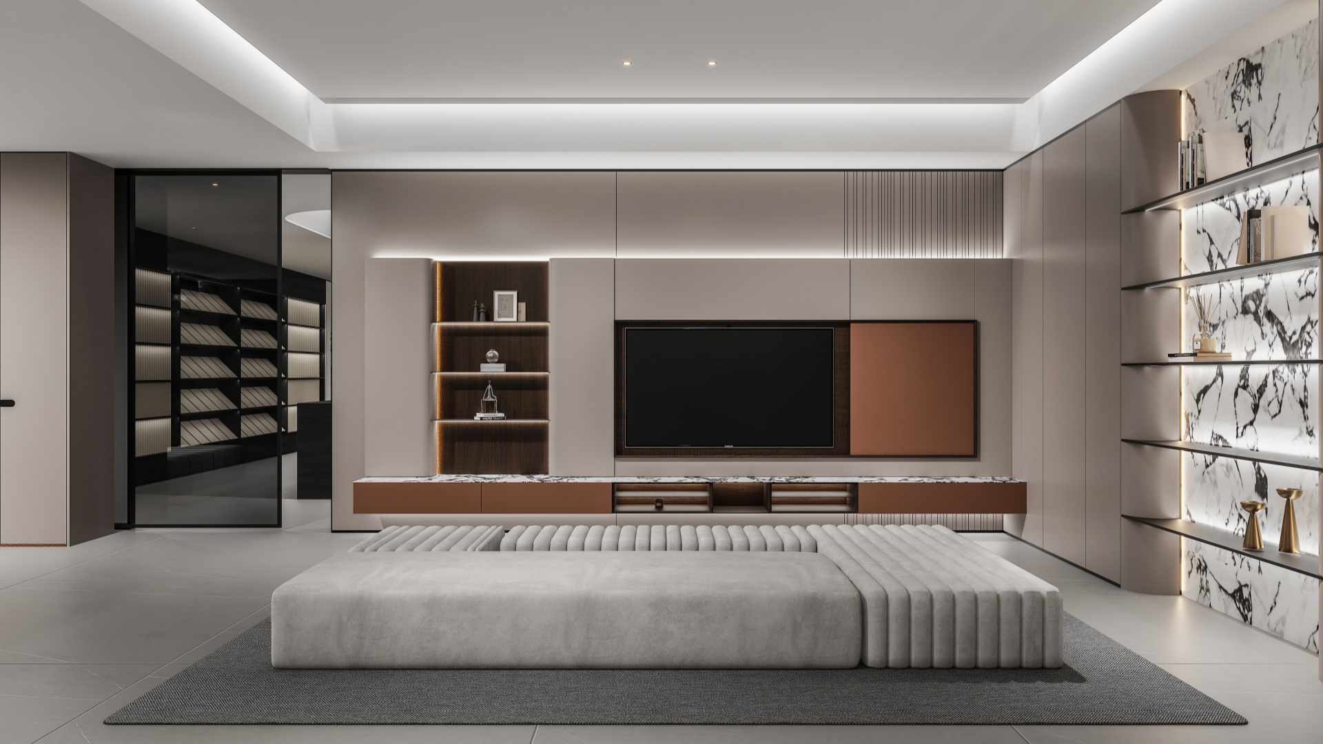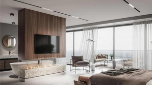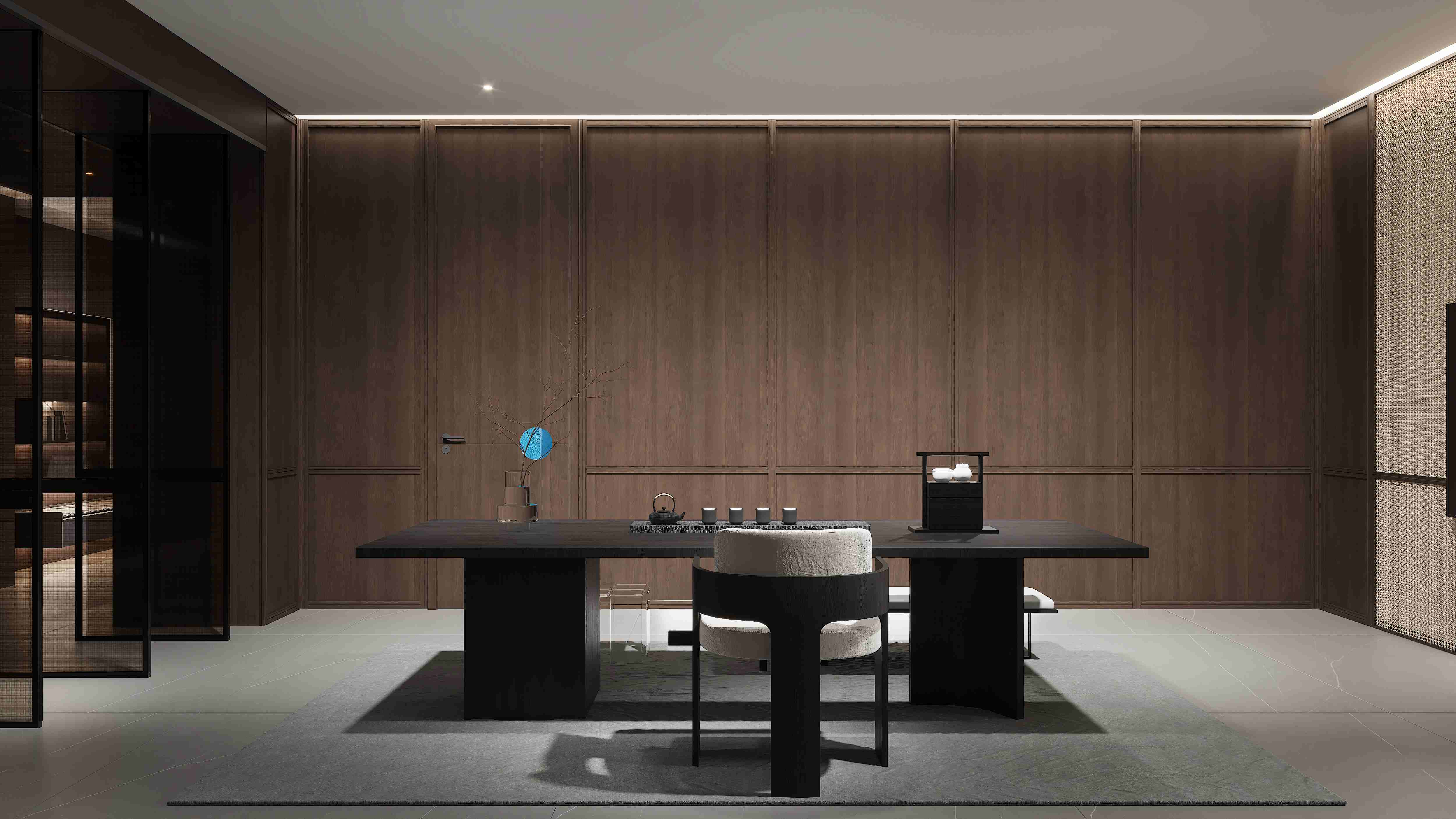 以門之色構(gòu)建墻板,猶如一道背景墻, #春天的風(fēng)將楊柳吹醒長出嫩芽。 東方的韻味把新中式裝入千家萬戶家中#